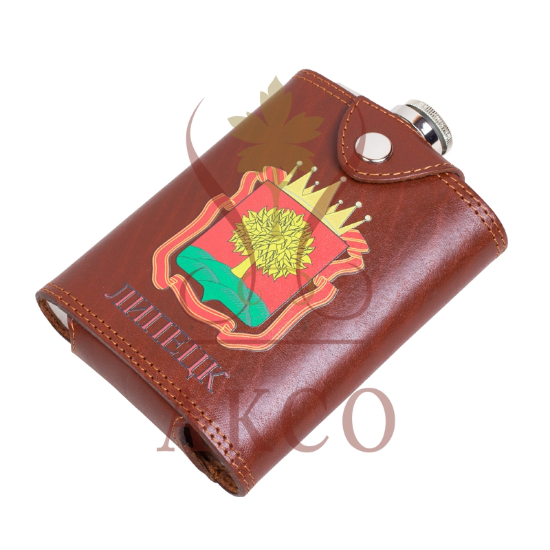 Фляга походная 0,24 л в чехле из натуральной кожи с символом г. Липецк