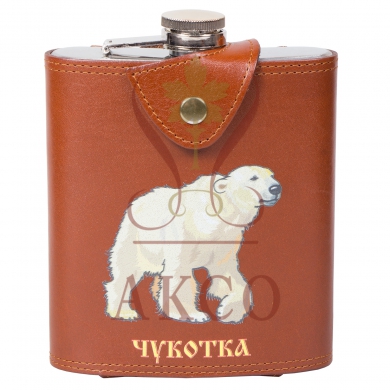 Фляга походная 0,53 л в чехле из натуральной кожи с символикой Чукотского автономного округа