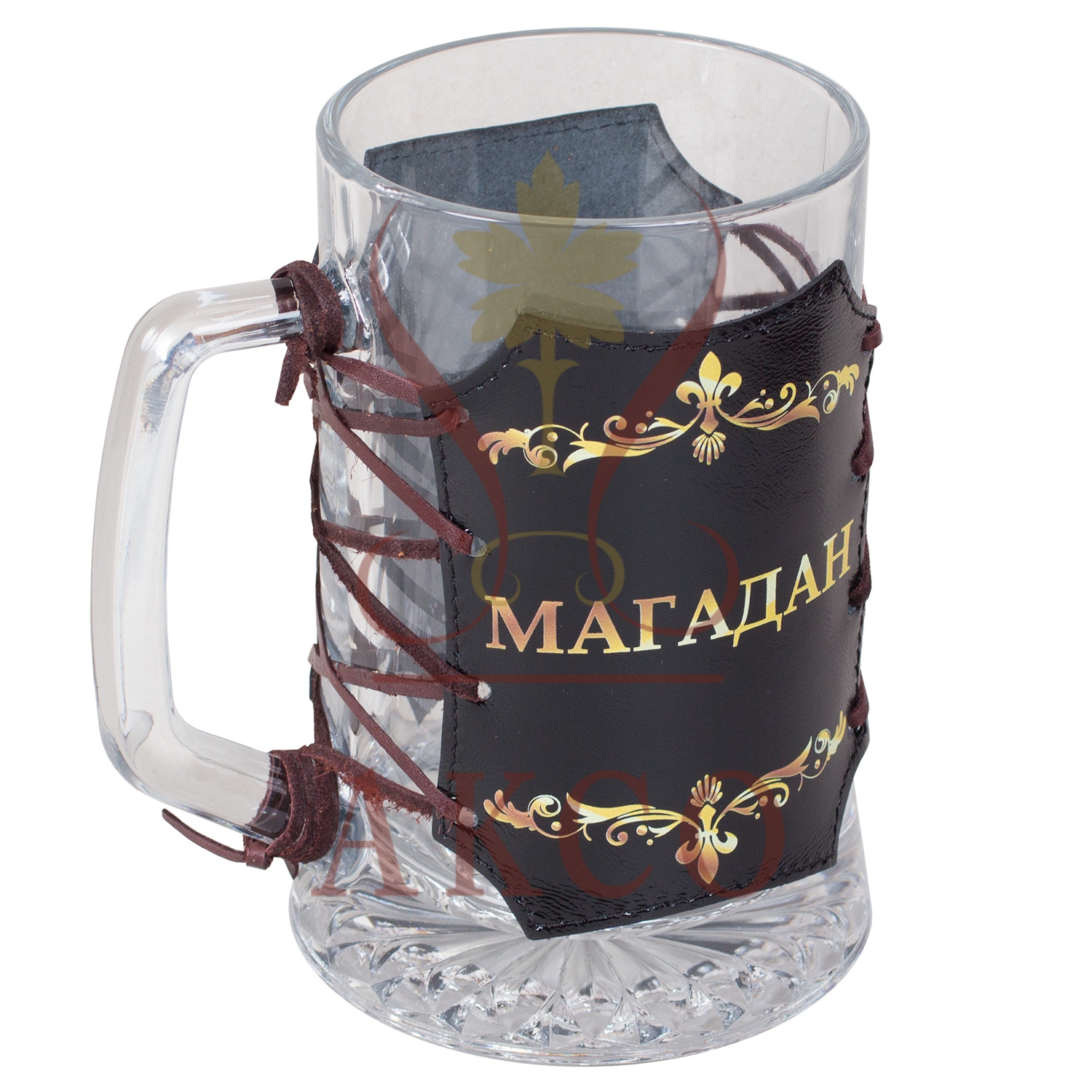 Кружка для пива, 0,67л, в оплетке из натуральной кожи с символами города Магадан
