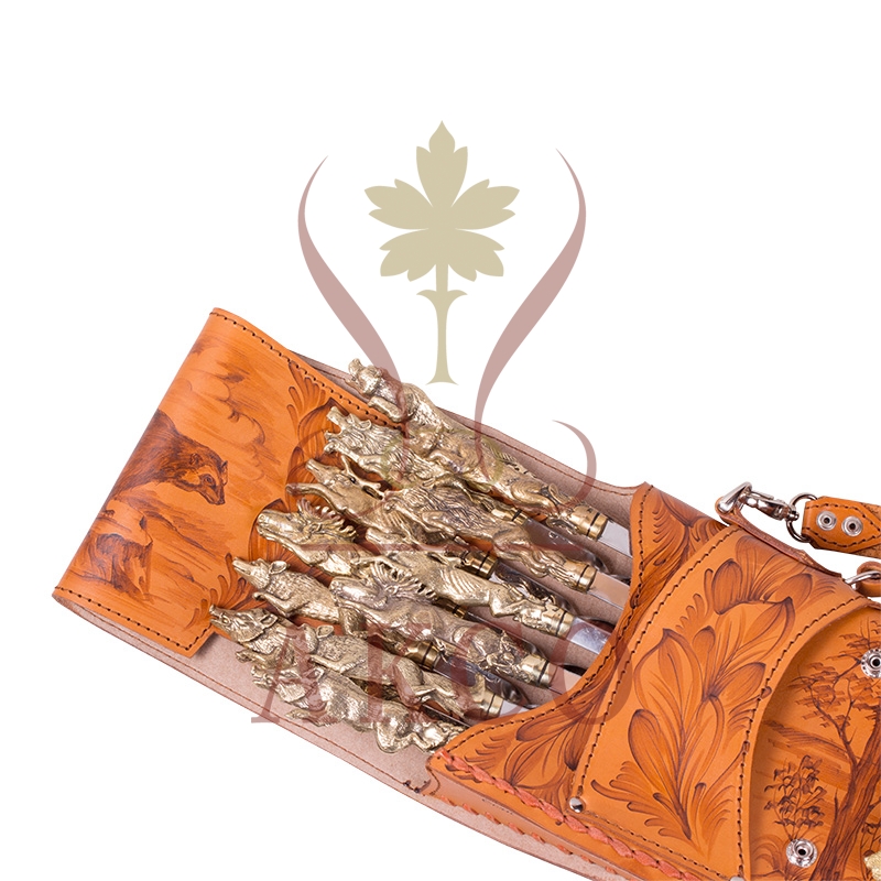 Шампурница подарочная с эксклюзивным оформлением, 12 шампуров, 2 ножа