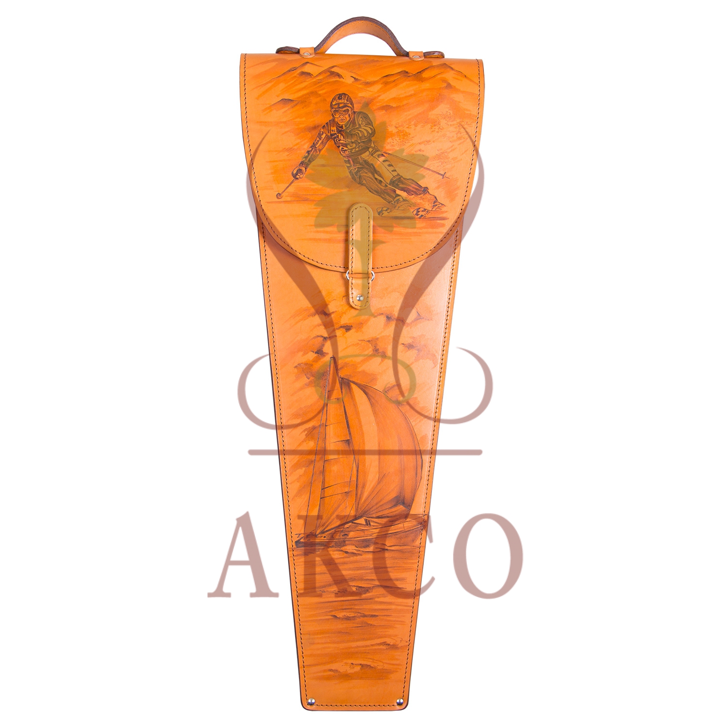 Шампура подарочные 6шт. в колчане из натуральной кожи c изображением лыжника и парусника