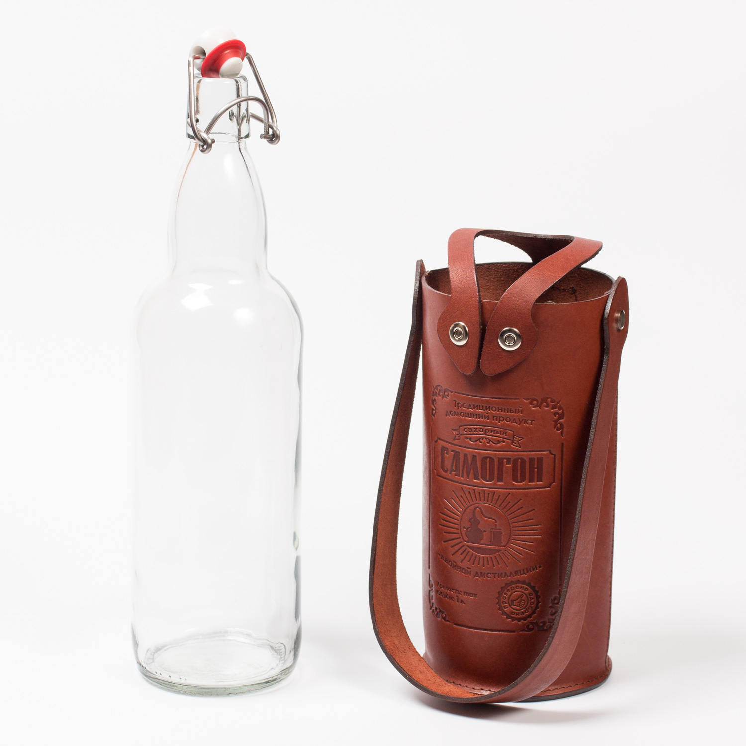 В ассортименте компании появилась бутыль для крепких напитков домашнего приготовления емкостью 1 литр в чехле из натуральной кожи. Благодаря наличию тиснения оригинальной этикетки со словом "Самогон" она станет отличным подарком в пустом виде любителю производить "домашний продукт" самостоятельно, а в заполненном - каждому любителю этого продукта. Продается пустой, предполагает многоразовое заполнение. Бутыль легко вынимается из чехла, но удобна для переноски в чехле.